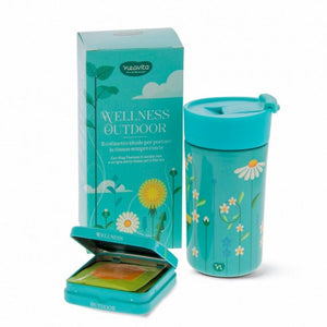 Cofanetto Wellness Outdoor Neavita contiene una Mug Thermos in accaio inox e uno scrigno porta tisane con all'interno 4 filtri bio per tipo di: